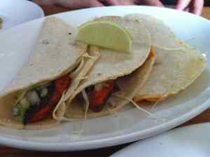So how can you create a bit of romantic summer holiday at home without resorting to our dear Old El Paso? Pulling out my recently aquired Mexican-at-a-glance recipe book Amor Y Tacos, ploughing through American-based Vegetarian cookbooks combined with my experiences, common flavours I discovered are of course the chilli (I read there’s something like 50 types of chillis in the cuisine, the most popular being jalepenos), lime, Spanish onion, corn, garlic, mango, coriander, tomatillos (or you can use tomatoes), avocado, cumin, paprika add a little mild flavoured semi soft cows cheese and you’re there. Use any of these in combination and then don’t forget cooking techniques like char grilling and any kind of rolling up and cooking in corn husks (think Tamales). Incidentally, I found this great little reference to help decipher Mexican cheeses (which will also be a really handy reference tool for other foodie related topics).