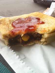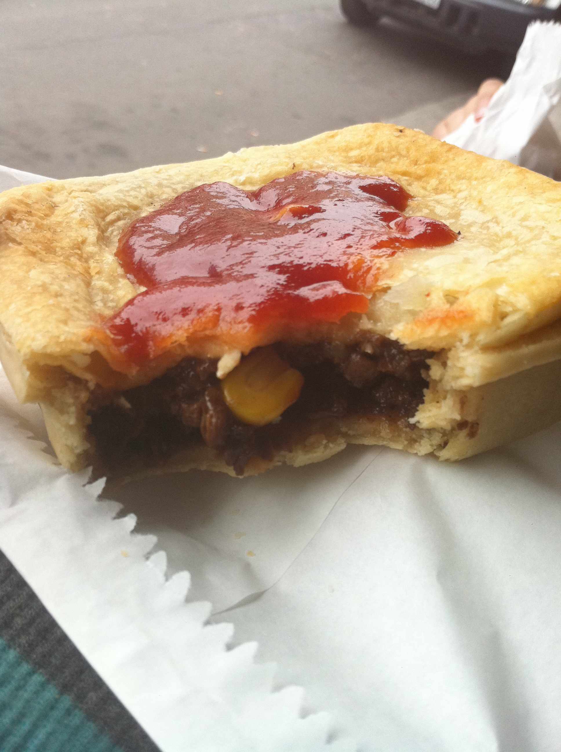 The filling is a mix of soy beans, peas, corn and mushrooms. It has a very similar rich gravy like regular meat pies (maybe not so runny, but that just made it easier to eat) and the consistency was like that of minced meat minus the gristle. Awesome. Shatha got a “sausage” roll that was the same deal – consistency and taste very closely matching that of its meat counterparts.