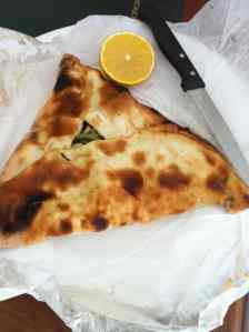 Yesterday she took me to this new funky Lebanese bakery, that has just opened up a block from our house, introducing me to mankoushé (prounounced: Man-oo-shee) for the first time. The self titled bakery serves these bread-based treats with an assortment of different fillings and toppings, made to order and fresh out of the oven. Like my previous blog on types of Mexican foods, mankoushé seem to be just different varieties of the same thing; bread base, different fillings, folded differently. For example, zatar was an open faced dough base (just like pizza) spread with oregano, oil, sumac and sesame seed and popped into a large stone based oven. We opted for the “Zatar Extra” and for a tiny $3.50 got all that and once cooked, topped with fresh tomato, cucumber, onion, olives and mint leaves. The whole thing was then rolled up and eaten like a souvlaki. This was my breakfast and I can’t think of a more unique, healthy and delicious way to start my day. It was enormously filling and my “Sbanikh” (spinach leaves, onion, lemon and sumac, folded into a triangle) had to wait for lunch.