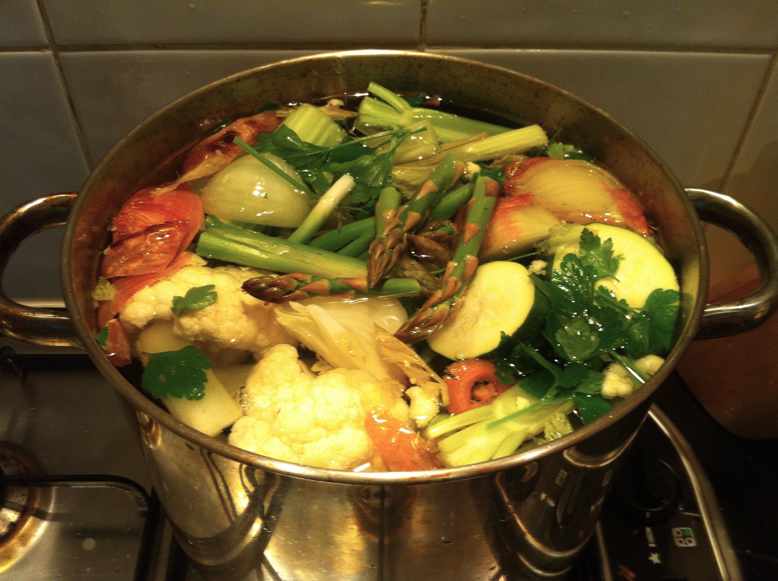 - You can add any combination of roughly chopped veg you have also such as leek, cauliflower, zucchini, broccoli, parsnip, fennel and I even added asparagus in the stock pictured below.