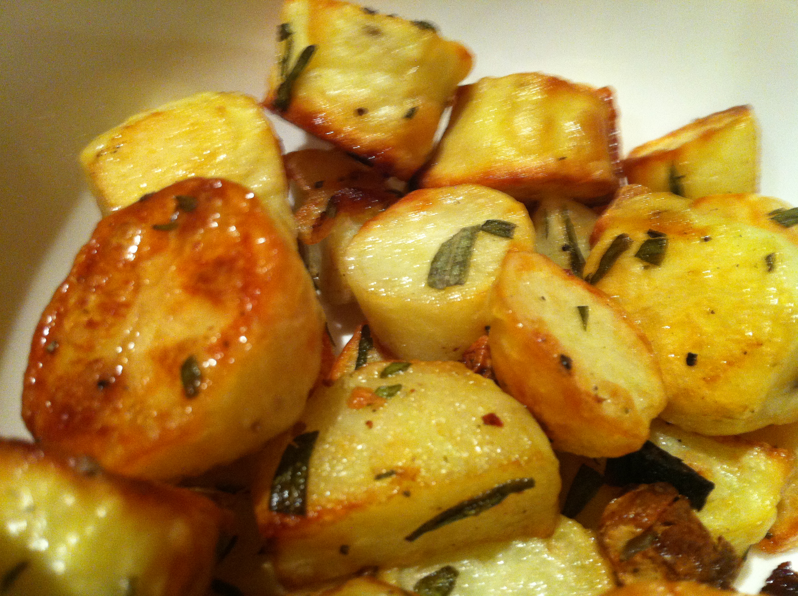 Oh, and just because they were so awesome, here’s a pic of the roast rosemary and garlic kipfler potatoes I made on Sunday night: