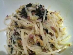It was so good, I bought more Kohlrabi and have just made another version. I very much enjoyed the nori/kohlrabi combination. Kohlrabi’s texture is not too dissimilar to green apples – giving a pleasant crunch and new texture for a salad. The flavour is mildly ‘green’ with a hint of pepperiness.