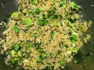 You’ll notice I bought some broad beans which are in season. I can’t believe that there was a time I actually disliked broadies (thanks mum for making me eat them boiled with their leathery skin on). I made this Quinoa and Broad Bean Salad, adapted from Matt Stone’s recipe on the cover of September’s Gourmet Traveller.