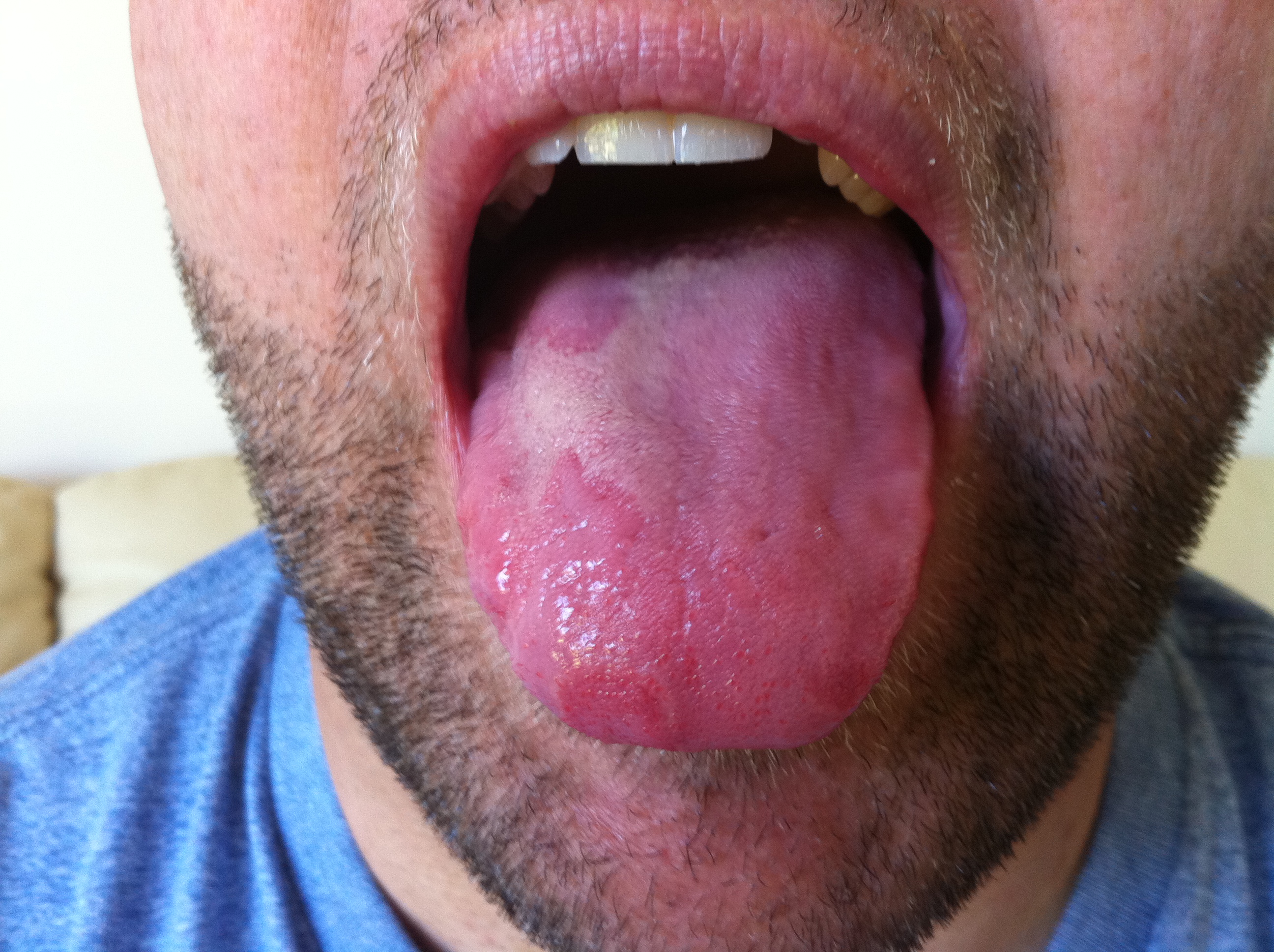 Stomach Yin Deficiency is a lack of stomach fluid to be able to aid in the physical digestion. The resulting symptoms can be any combination of the following*; no desire to eat, constipation, dryness in the mouth and throat, and feeling of fullness after eating. The peeling is occuring on the Stomach/Spleen and Heart regions of the tongue. There’s a bit of heat (redness) on the Heart region indicating that this fluid deficiency is giving rise to a bit of deficiency heat that is usually indicated by bleeding gums, night sweating, malar flush to name a few*.