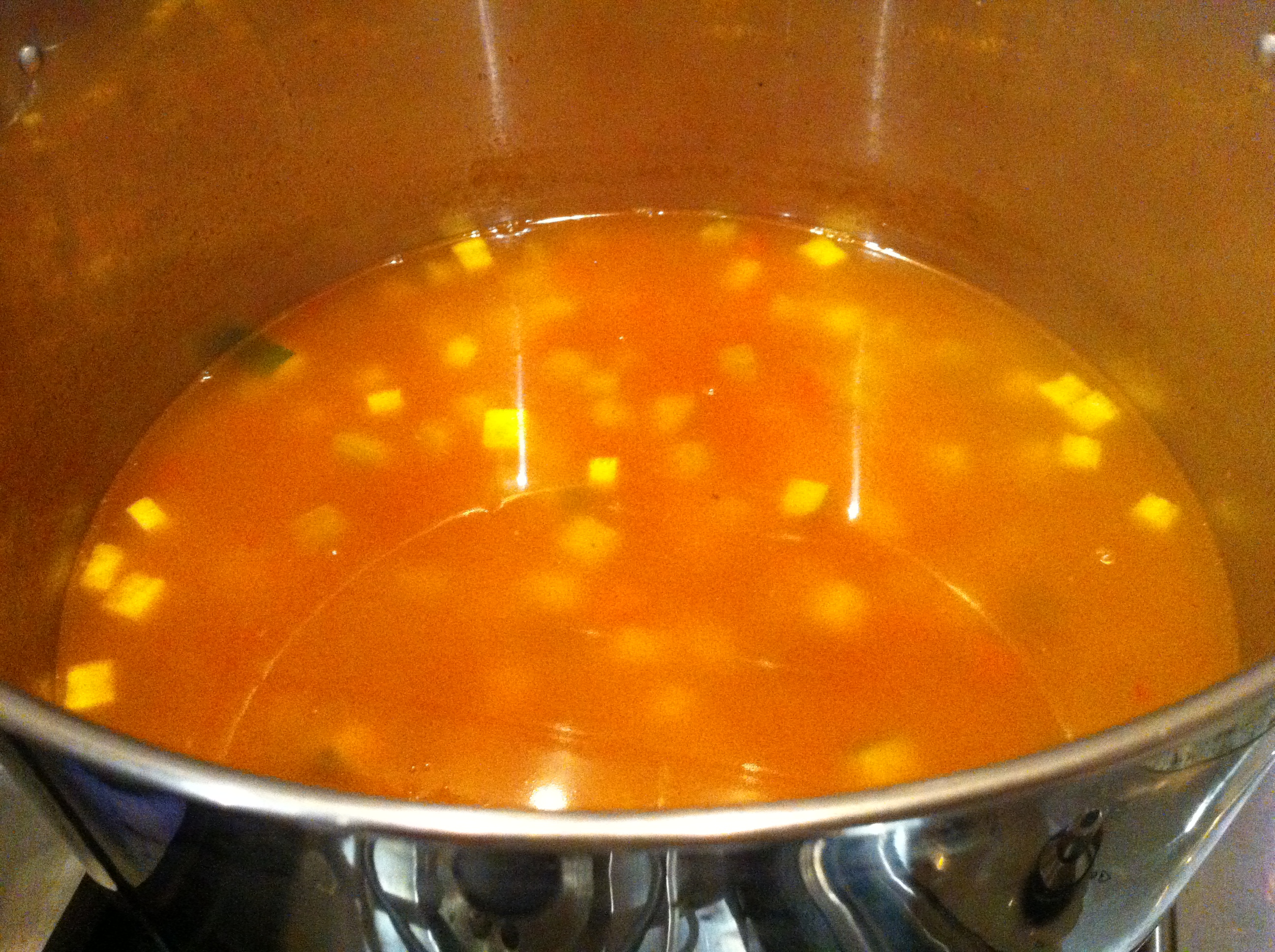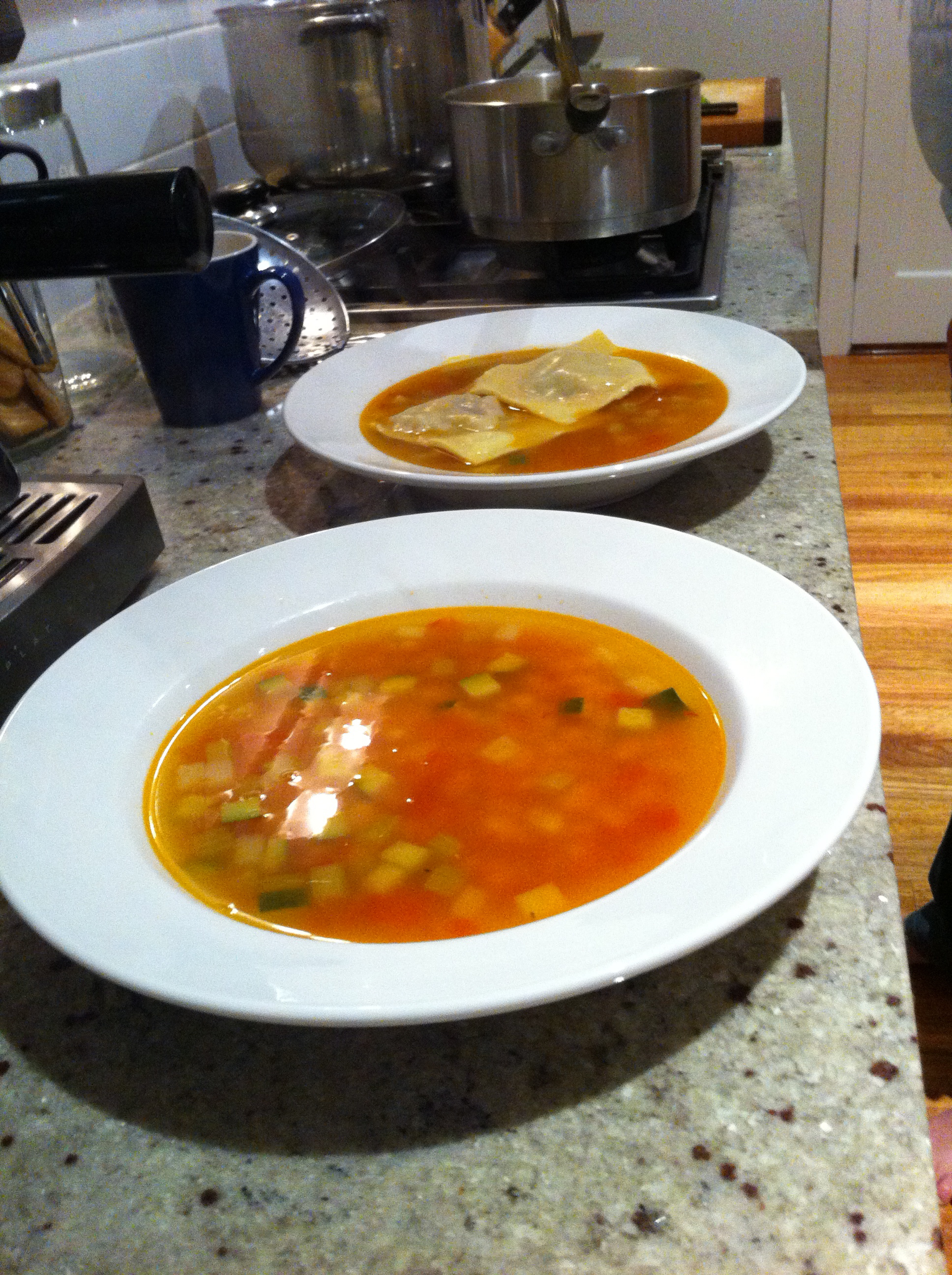 I blogged on how to make a basic pasta dough in my last post here. Follow the same instructions and allow the dough to rest in the fridge while the broth is simmering.