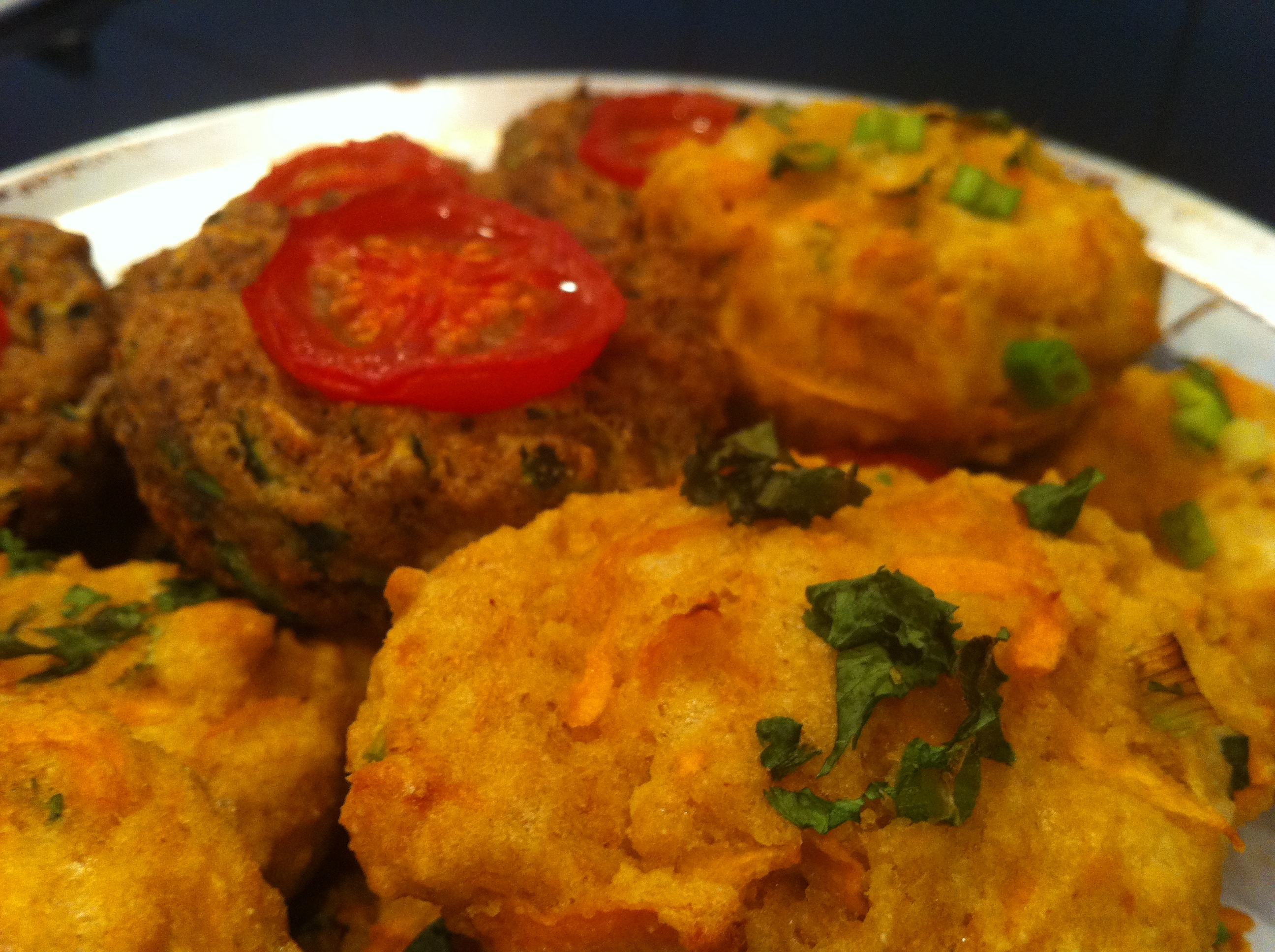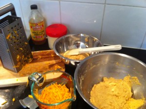 After caving on my no-sugar bandwagon last night (a chocolate craving lead me to making oatmeal and orange chocolate chip cookies), I decided to combat further mishaps. Enter scrummy savoury muffins. I got a bit clever, and split the batter in two, so I could play with different flavours.