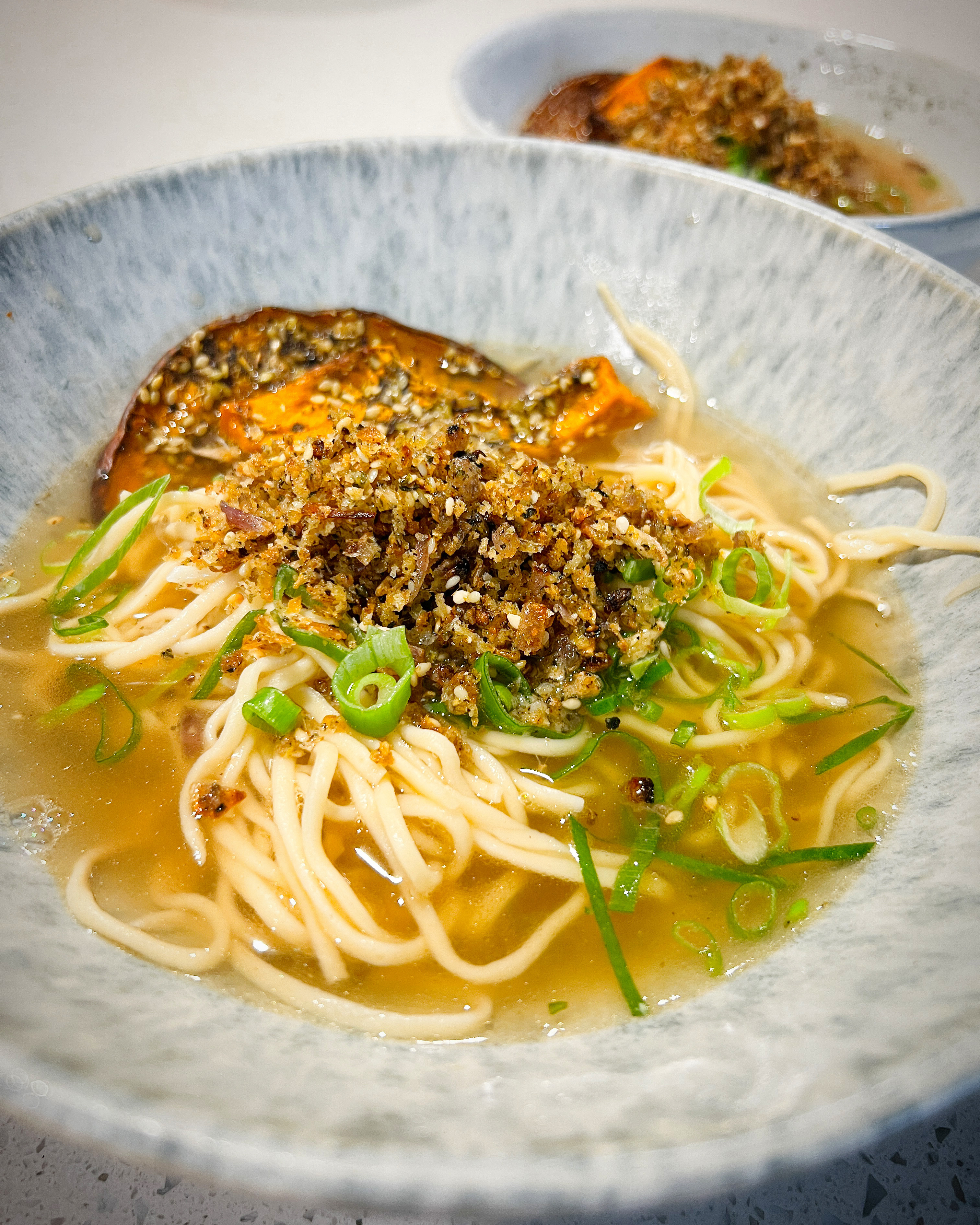 Ginger Broth with smokey chilli oil and fragrant ginger crumble